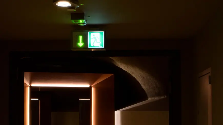 However, optical dynamic escape routing is essentially only an addition to conventional emergency and safety lighting, and cannot replace the latter. In the event of a power cut, safety lighting connected to an automatically triggered power supply for safety systems ensures the illumination of specific areas (escape routes, assembly rooms, etc.) with a specified illuminance. It is also responsible for lighting or backlighting emergency exit luminaires and direction signs signposting an escape route. However, this signage cannot react to danger by altering the direction sign. On the contrary, it can point in the wrong direction, in other words into the danger zone.