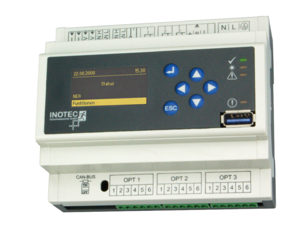 Durch Einsatz der INOTEC Controller Unit für Netzersatzanlagen (NEA-ICU) als automatisches Prüfsystem für die Sicherheitsbeleuchtung wird der wiederkehrende Wartungsaufwand deutlich reduziert. Die Ergebnisse aller durchgeführten Tests werden ausführlich im integrierten Prüfbuch dokumentiert.