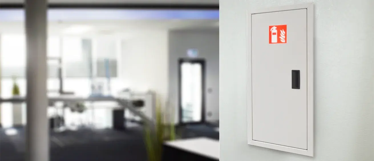 With this fire extinguisher control cabinet, the fire-fighting equipment can be stylishly integrated into the architecture.