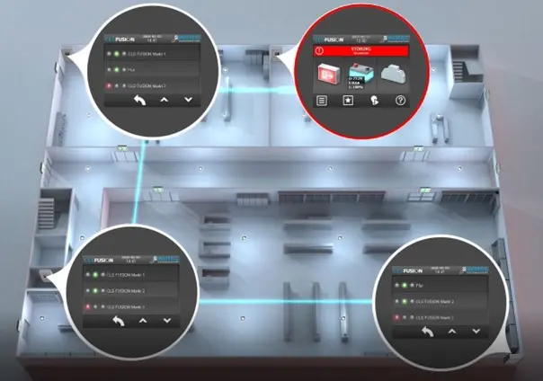 At every CLS FUSION in the FUSIONconnect project, it is instantly visible if a connected system reports a failur. A corresponding symbol clearly indicates a failure on the main screen of each system.