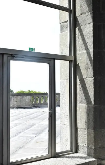 The system is based on a fire protection concept that takes into account the particular needs of a structure with only one escape route. Because the visitor route leads partly through unlit stairways, a special system was required. The structure formed a single fire compartment, as a result of which the electrical plant room could be combined with other electrical distributors. Only one room, narrow but with a high ceiling, on the ground floor of the octagon, was suitable for its location. So a second storey was built, with a narrow stairway. As a result, a tailored solution had to be developed to be able to transport the system into the room.