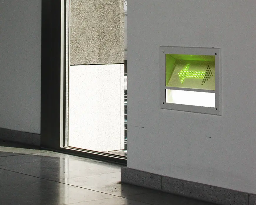 The technical rules for workplaces (ASR) stipulate in which cases a dynamic escape routing system is to be used. This is the case where a heightened risk exists because of local or operational conditions – for example, in large interconnecting or multi-storey building complexes, where a high number of the persons present are not familiar with the surroundings or where a high number of persons present have limited mobility. Such circumstances may require a safety guidance system that responds to any danger and indicates the best escape route (extract from ASR A2.3 of August 2007). In addition, a dynamic escape routing system can be employed as a compensatory measure where there are deviations from the building code.