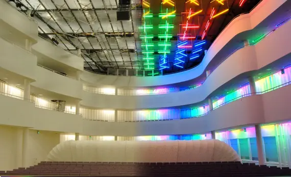 The theatre was built in 1966 and is viewed as one of the city's landmarks. Architect Jo Coenen was in charge of renovating the auditorium in 2012. The renovation also included a revision of the safety and evacuation concept in order to plan the emergency and safety lighting. Maikel van Rooijen, installation consultant to the city of Tilburg, describes the situation prior to 2012: "Different designs comprising both single battery and central power systems had been installed in the theatre in Tilburg. The self-contained emergency exit and safety luminaires were not interlinked, which made it impossible for the building technicians to monitor and display the status of the emergency and safety lighting."