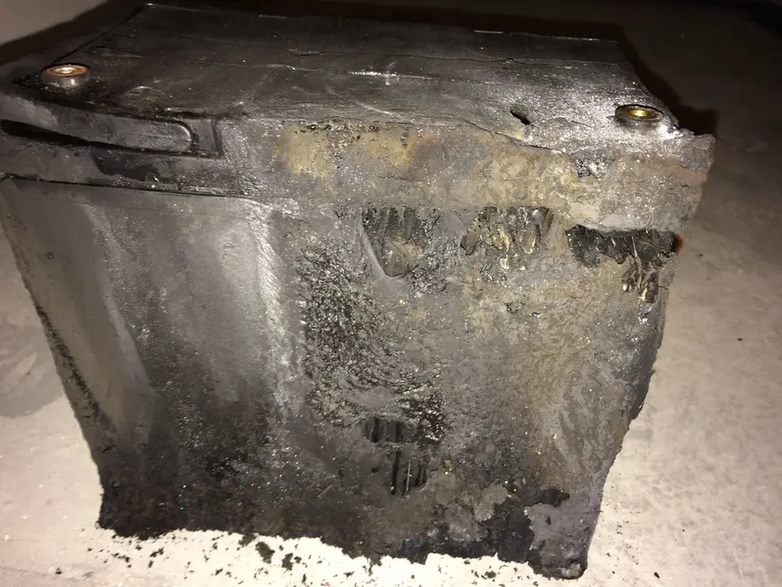 Herzstück eines jeden Sicherheitsbeleuchtungssystems ist die Batterie. Fällt sie aus, ist kein Notlichtbetrieb mehr möglich. Eine jährliche Inspektion und Prüfung der geforderten Nennbetriebsdauer ist zwar vorgeschrieben, mangelhafte Batterien werden zwischen den Wartungsintervallen allerdings nur selten erkannt. Die Folge kann eine Batterie sein, wie sie in Bild 8 zu sehen ist.