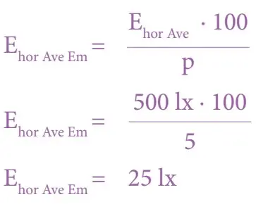| Ehor Ave Em | = Mittlere horizontale Beleuchtungsstärke im Notbetrieb | Ehor Ave | = Mittlere horizontale Beleuchtungsstärke im Netzbetrieb U |