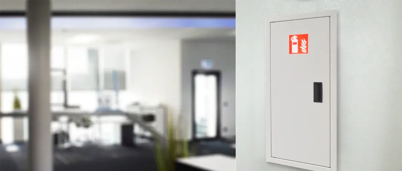 Mit diesem Feuerlöscher-Einstellschrank lässt sich die Brandbekämpfungseinrichtung stilvoll in die Architektur integrieren.