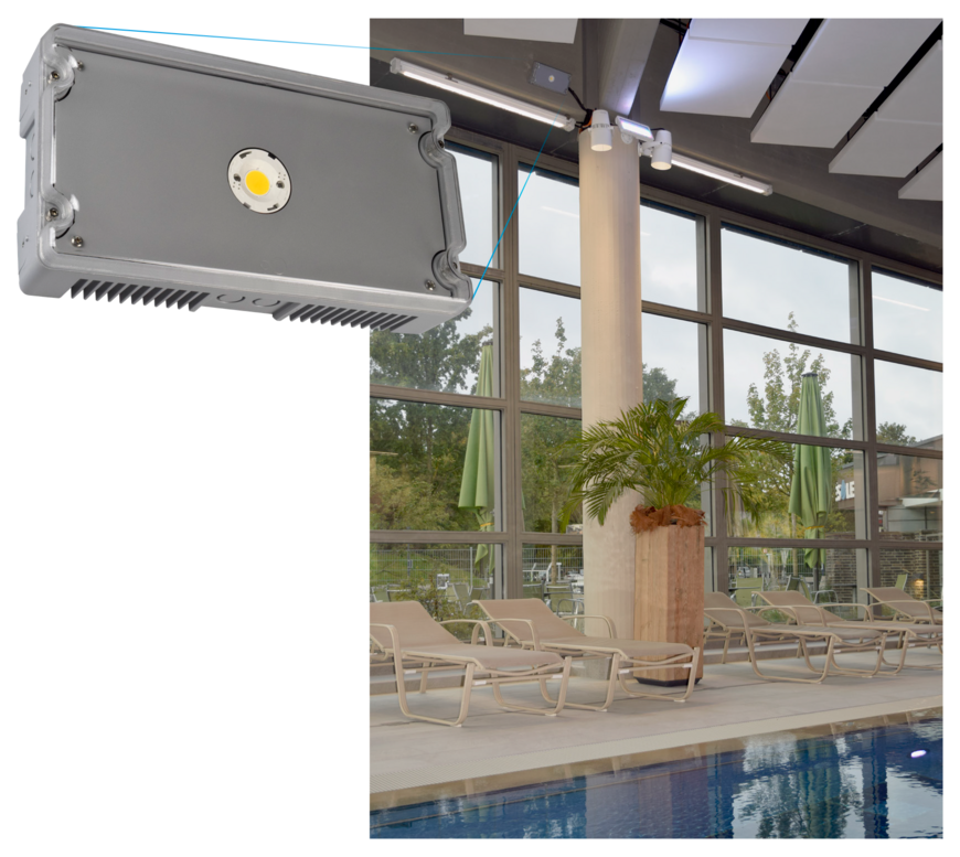 In Schwimmbadbereichen werden wegen der Umgebungsanforderungen häufig Produkte aus Edelstahl eingesetzt. Jedoch erfordern diese Oberflächen eine entsprechende Pflege, da es ansonsten zu optischen Beeinträchtigungen kommen kann. Die Ursache: Kondensatbildung auf den Oberflächen. Auch bei hochlegierten Edelstählen kann dies zu Verfärbungen führen. Darum müssen diese Produkte, so auch Leuchten aus Edelstahl, regelmäßig gereinigt werden. Durch eine spezielle Lackierung, die optional für INOTEC Edelstahlleuchten erhältlich ist, kann die Oberfläche der Leuchten geschützt werden. Für diese Bereiche eigneten sich ebenfalls Leuchten aus anderen Materialien, wie Aluminium oder Polycarbonat.