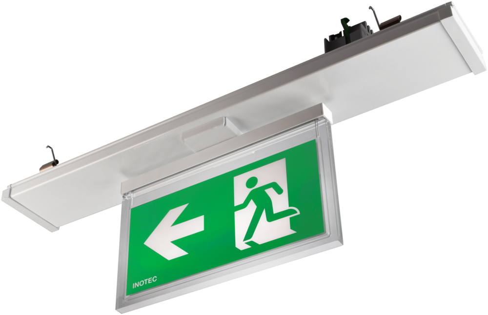 LED-Rettungszeichen-Scheibenleuchte mit rahmenloser, freihängender Piktogrammscheibe. Homogene Piktogrammausleuchtung durch moderne Lichtleiter-Technologie. Piktogramm um 90° drehbar. Geräteträger VL2TM 13-pol. für RIDI LINIA EVO-Tragschiene.Einfaches Einclipsen mit Hilfe der werkzeuglos zu betätigenden Rastverschlüsse zur elektrischen Kontaktierung inkl. Stromkreisauswahl und mechanischen Befestigung.