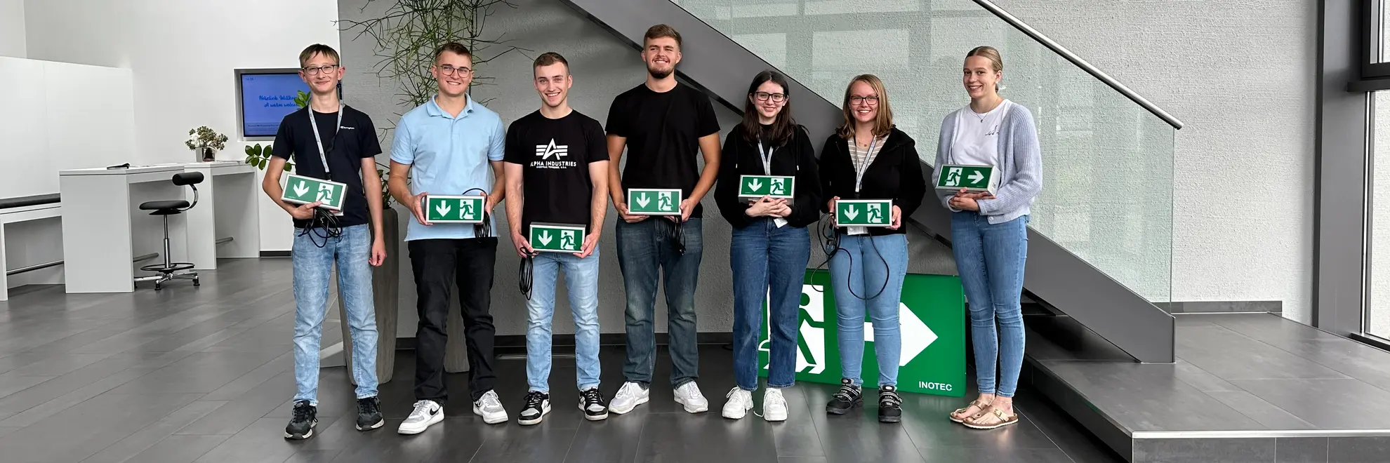 Am zweiten Tag stand zunächst eine Unternehmensrallye im Fokus. Diese Rallye hatte zum Ziel, uns die verschiedenen Abteilungen zu zeigen und beinhaltete auch einen Rundgang beim Lieferanten MDG, der uns den Bau einer INOTEC-Leuchte näherbringen sollte. Die Rallye war so konzipiert, dass wir am Ende des Tages unsere eigene Rettungszeichenleuchte gebaut haben, was mit Rätseln und Aufgaben verbunden war. Zusätzlich sorgten Kennenlernspiele unter den Azubis für Abwechslung. Nachdem wir unsere eigene Rettungszeichenleuchte fertiggestellt hatten, durften wir sie auf ihre Funktion testen und als Erinnerung an diesen schönen Tag mit nach Hause nehmen. Zum Abschluss des Tages gab es ein FAQ, bei dem uns der Aufbau der Ausbildung sowie des Unternehmens erklärt wurde.