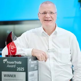 Ein ganz besonderes Highlight war für uns die Award-Verleihung am ersten Messetag: In der Kategorie „Anlagentechnischer Brandschutz“ durften wir stolz den FeuerTrutz-Award für den 1. Platz entgegennehmen. Diese Auszeichnung würdigt nicht nur unsere Innovationskraft, sondern auch das Engagement unseres gesamten Teams. Für uns ist dieser Preis eine große Ehre – und zugleich Motivation, auch weiterhin mit Lösungen zu überzeugen, die Sicherheit, Effizienz und Nachhaltigkeit vereinen.