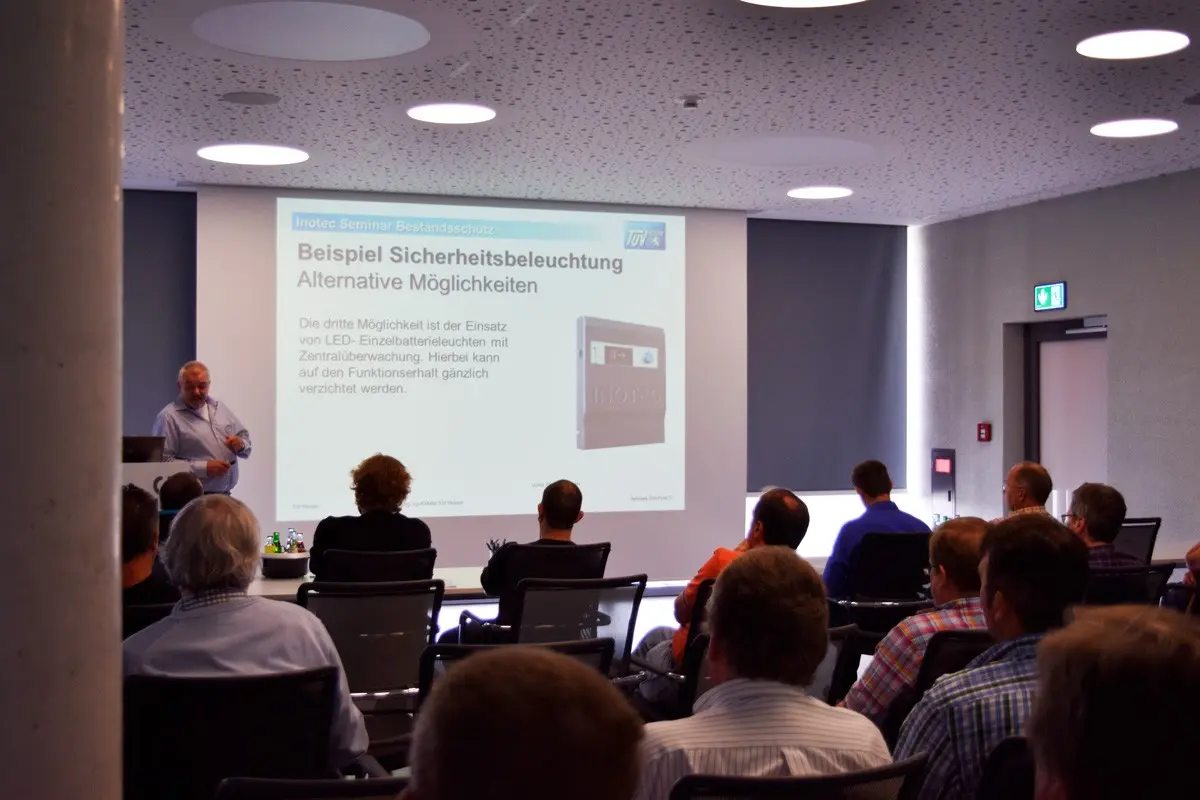 Neben den Produktvorstellungen und Fachgesprächen mit den Mitarbeitern waren die verschiedenen Vorträge von externen Sachverständigen bei den Besuchern sehr gefragt. Themen wie „Bestandsschutz – wo fängt er an, wo hört er auf“ oder „Sicherheitsbeleuchtung in Verbindung mit DALI“ brachten die Räumlichkeiten teilweise an ihre Kapazitätsgrenzen. Diese große Nachfrage zeigt, dass aktuelle und viel diskutierte Themen aus dem Bereich der Not- und Sicherheitsbeleuchtung aufgegriffen wurden.