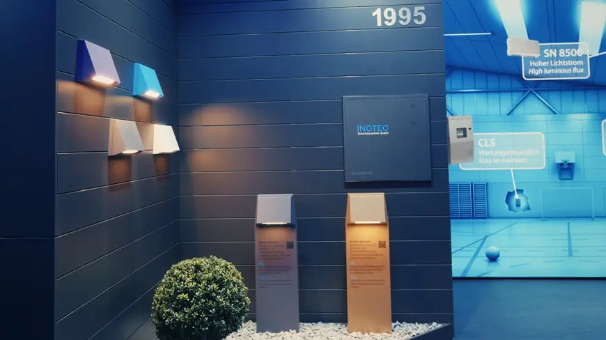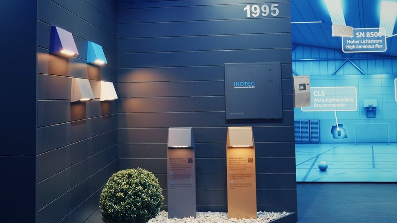 Ein weiteres Highlight war unsere kombinierte Außenleuchte für Allgemein- und Sicherheitsbeleuchtung. Sie lässt sich flexibel einsetzen – ob klassisch an der Fassade oder als Pollerleuchte für Wege und Außenflächen.